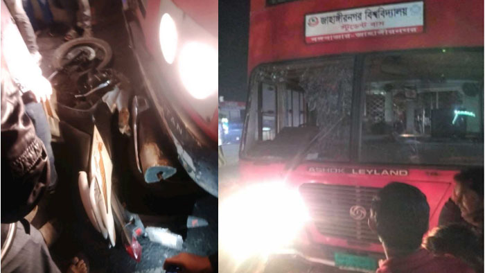 উল্টো আসা বাইকের সঙ্গে জাবির বাসের সংঘর্ষ: নিহত ১