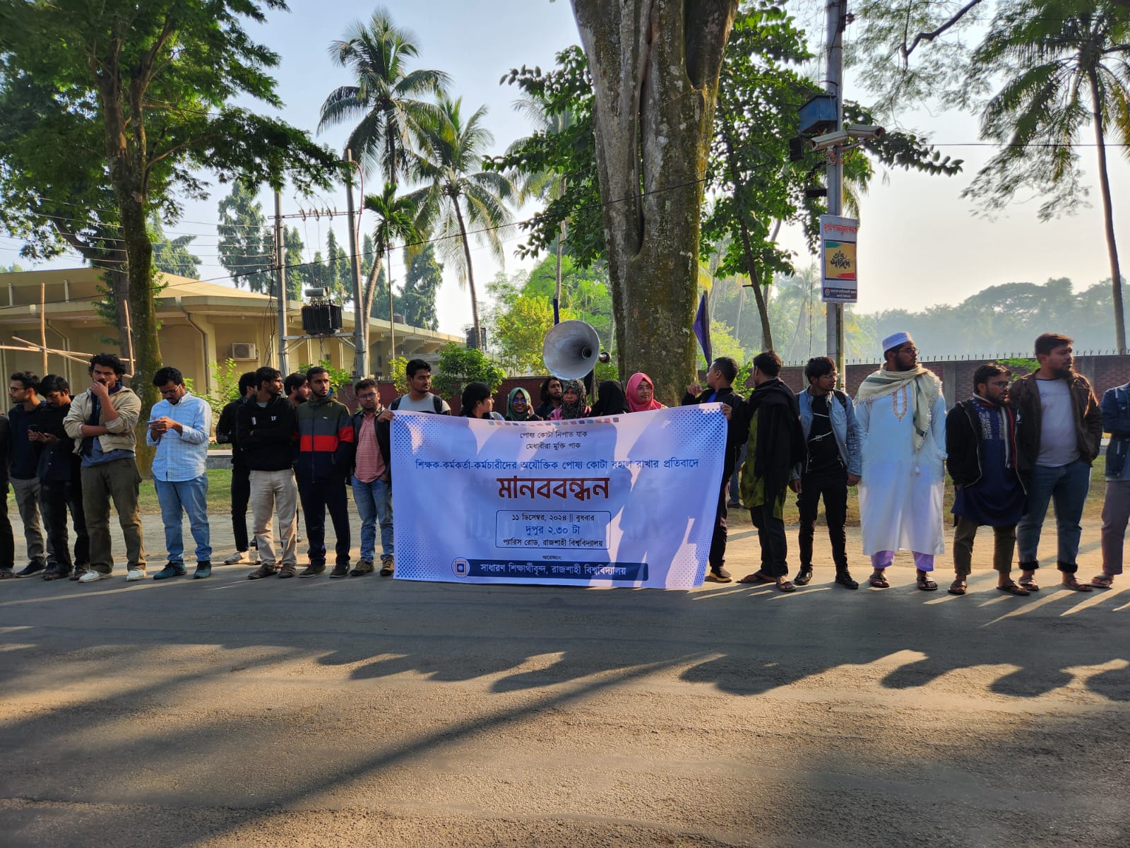 অযৌক্তিক পোষ্য কোটা বহাল রাখার প্রতিবাদে রাবিতে মানববন্ধন
