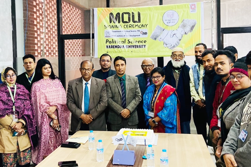বরেন্দ্র বিশ্ববিদ্যালয়ের রাষ্ট্রবিজ্ঞান বিভাগ ও ব্র্যাক ইনস্টিটিউট অব স্কিল ডেভেলপমেন্ট, রাজশাহীর মাঝে একটি সমঝোতা স্মারক স্বাক্ষরিত হয়। এ উপলক্ষ্যে বরেন্দ্র