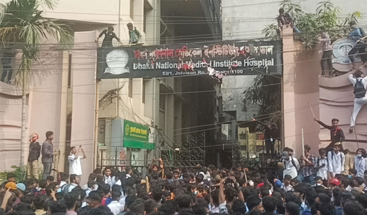 শিক্ষার্থীর মৃত্যু ঘিরে ন্যাশনাল মেডিকেলে ভাঙচুর