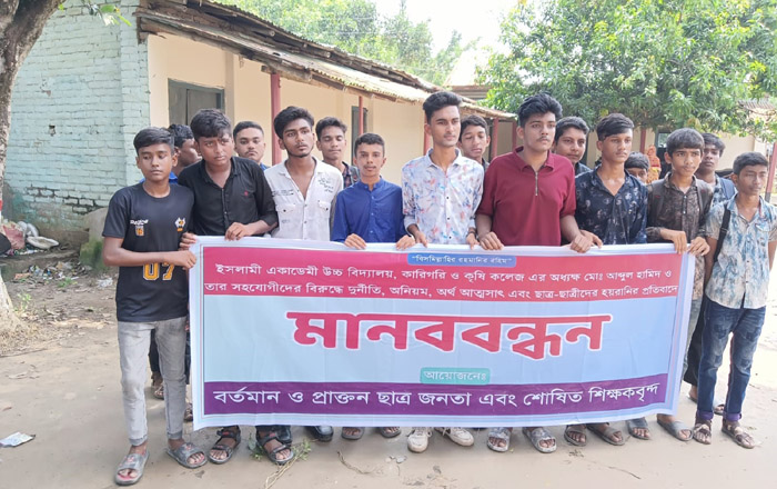 বাঘায় অধ্যক্ষের পদত্যাগের দাবিতে শিক্ষার্থীদের মানববন্ধন ও বিক্ষোভ