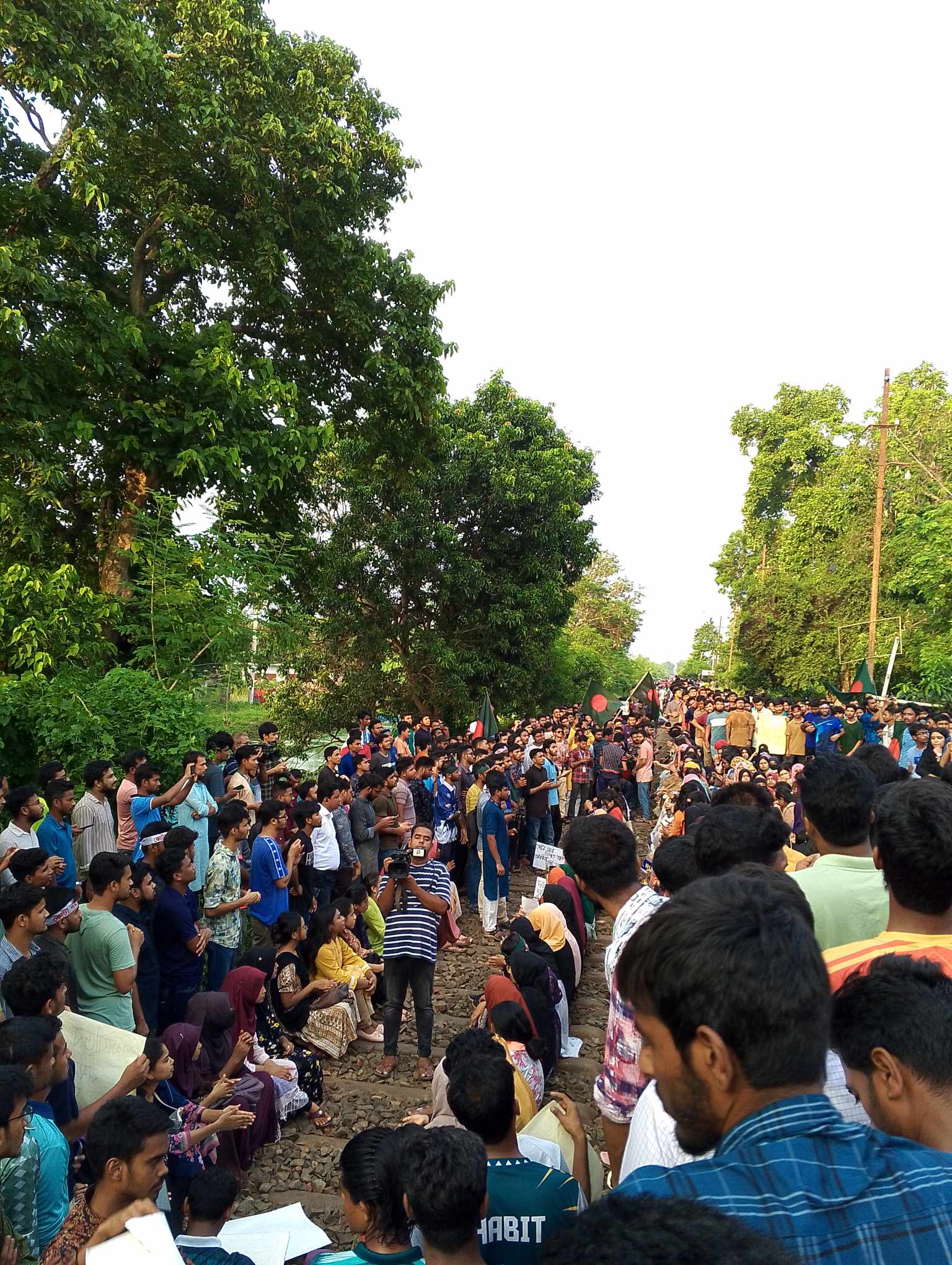 কুমিল্লা বিশ্ববিদ্যালয়সহ সারাদেশে কোটা সংস্কার আন্দোলনে পুলিশি হামলার প্রতিবাদে তৃতীয় দিনের মতো রেললাইন অবরোধ করে বিক্ষোভ-সমাবেশ করছেন রাজশাহী বিশ্ববিদ্যালয়ের (রাবি)
