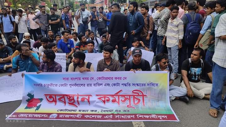 কোটা বাতিলের দাবিতে সড়ক অবরোধ রাজশাহী কলেজ শিক্ষার্থীদের