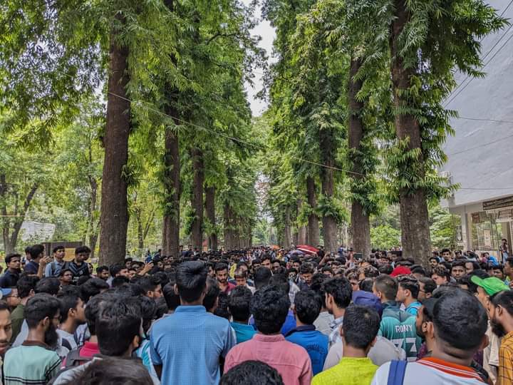 মুক্তিযোদ্ধা কোটা পুনর্বহালের প্রতিবাদে রাজশাহী বিশ্ববিদ্যালয়ে বিক্ষোভ সমাবেশ