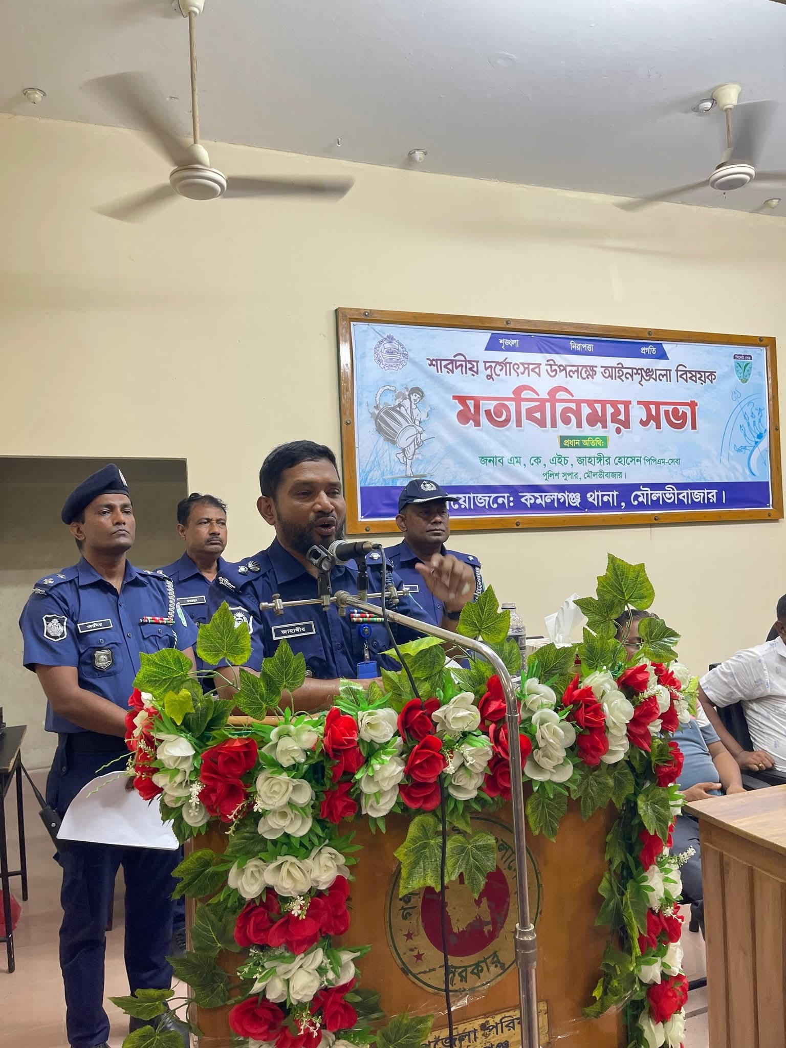 কমলগঞ্জে দুর্গাপূজা উপলক্ষে আইনশৃঙ্খলা বিষয়ক মতবিনিময় সভা অনুষ্ঠিত