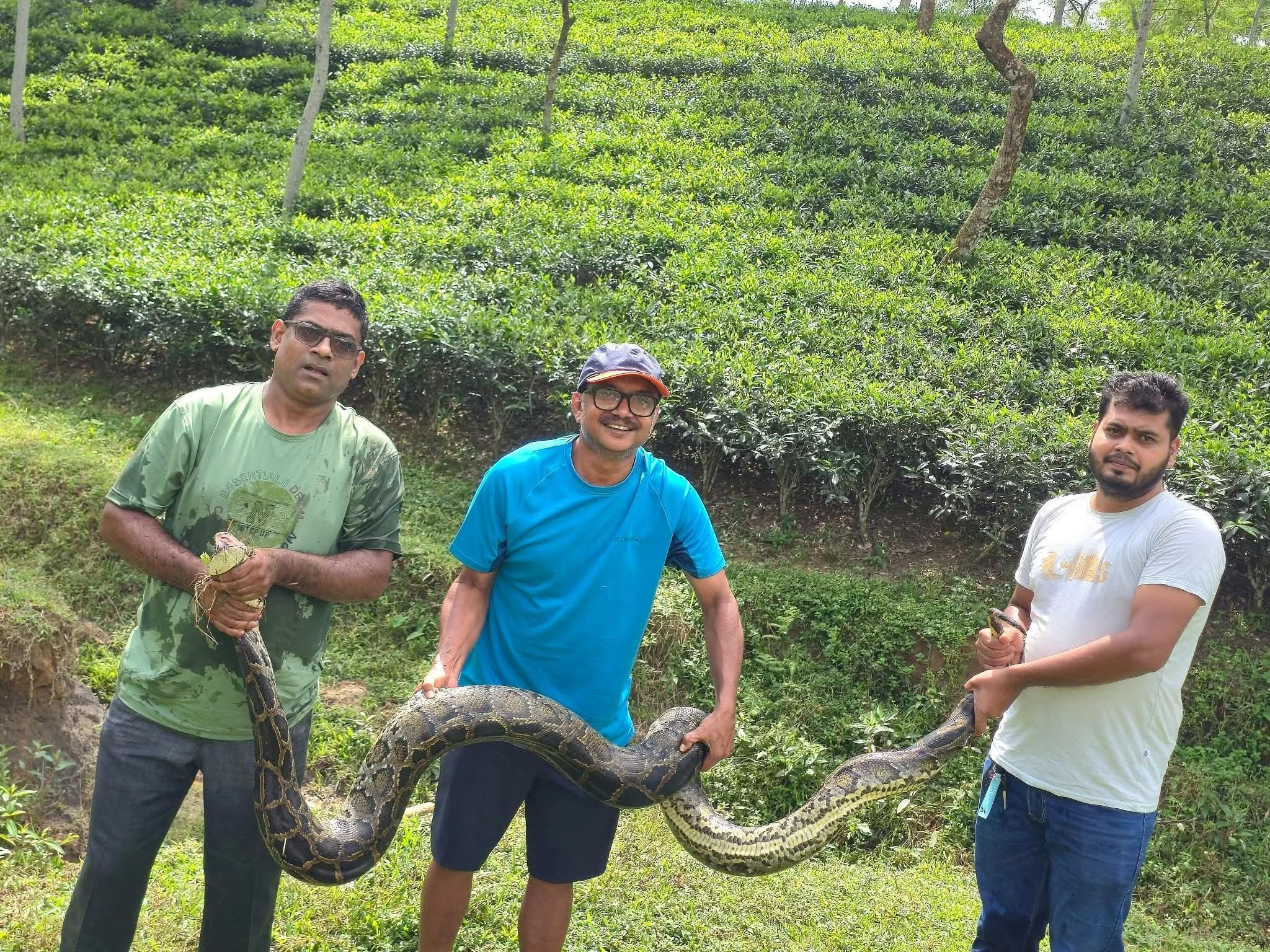 শ্রীমঙ্গলে চা বাগানের লেক থেকে অজগর সাপ উদ্ধার