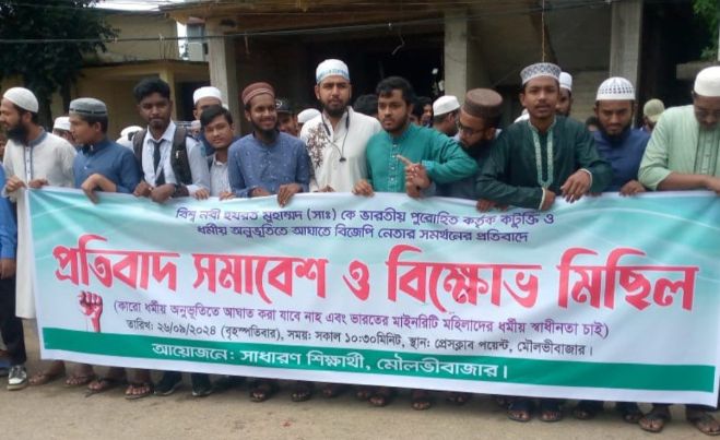 মহানবীকে অবমাননার প্রতিবাদে মৌলভীবাজারে শিক্ষার্থীদের বিক্ষোভ সমাবেশ