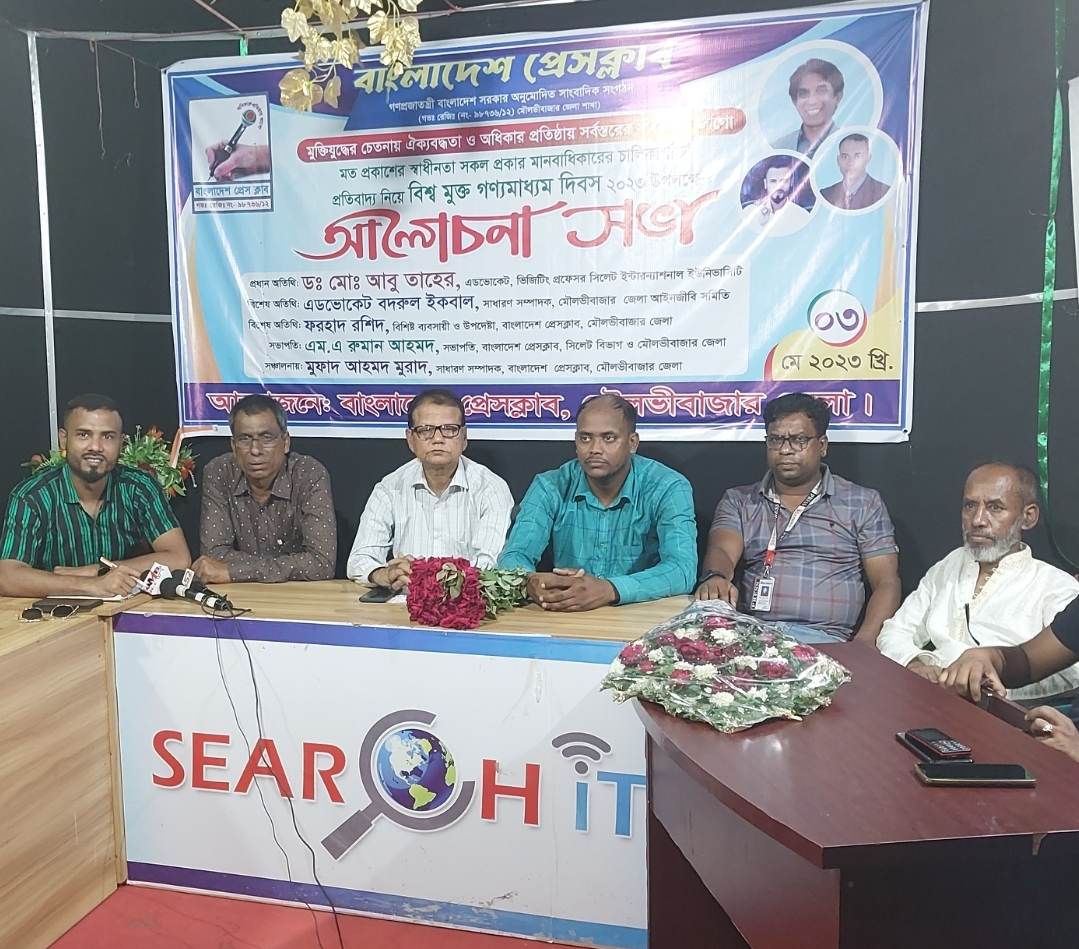 বিশ্ব মুক্ত গণমাধ্যম দিবসে বাংলাদেশ প্রেসক্লাব মৌলভীবাজার জেলা শাখার আলোচনা সভা