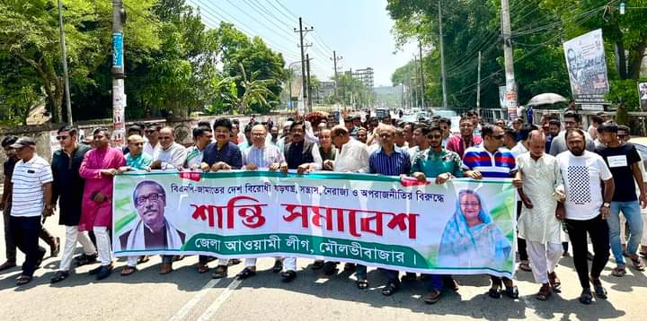 মৌলভীবাজার জেলা আওয়ামীলীগের শান্তি সমাবেশ অনুষ্ঠিত