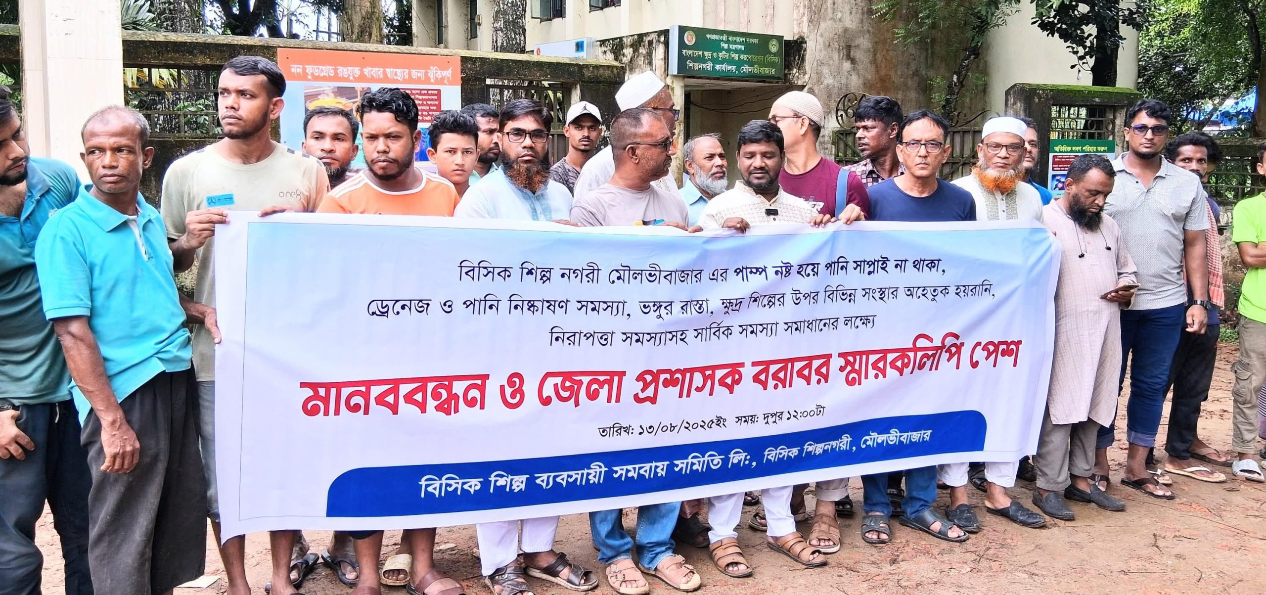 মৌলভীবাজারের বিসিক শিল্প নগরীতে মানববন্ধন