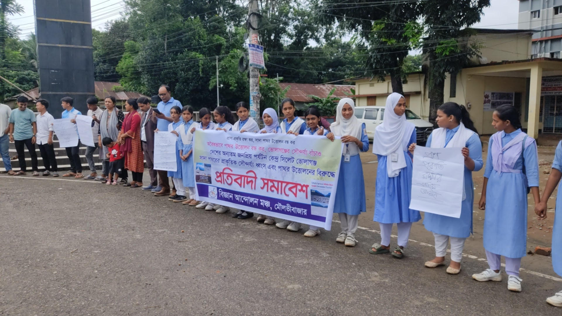ভোলাগঞ্জে পাথর লুটপাট, মৌলভীবাজারে বিজ্ঞান আন্দোলন মঞ্চের প্রতিবাদ সমাবেশ