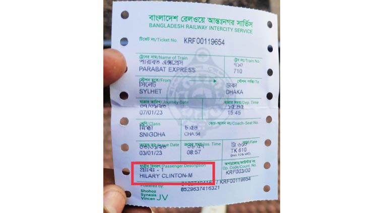 কুলাউড়ায় ট্রেনের টিকিট কাটলেন ‘হিলারি ক্লিনটন’!