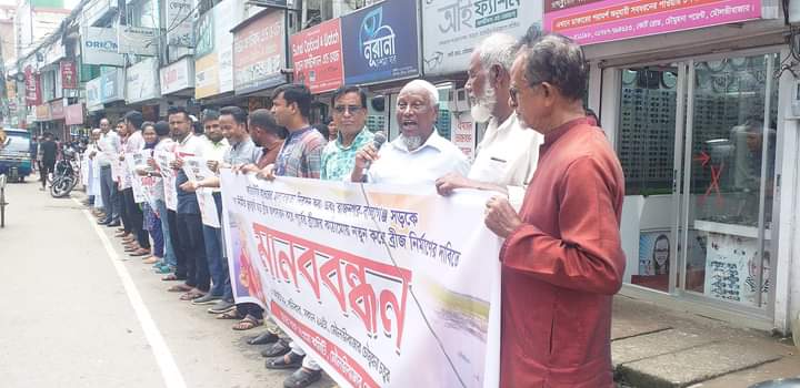 মৌলভীবাজারে হাওর রক্ষা সংগ্রাম কমিটির মানববন্ধন