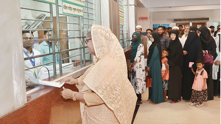 সাধারণ রোগীদের মতো দশ টাকায় টিকিট কেটে চোখ পরীক্ষা করালেন প্রধানমন্ত্রী শেখ হাসিনা।আজ শনিবার (১৫ জুলাই) সকালে রাজধানীর জাতীয় চক্ষু
