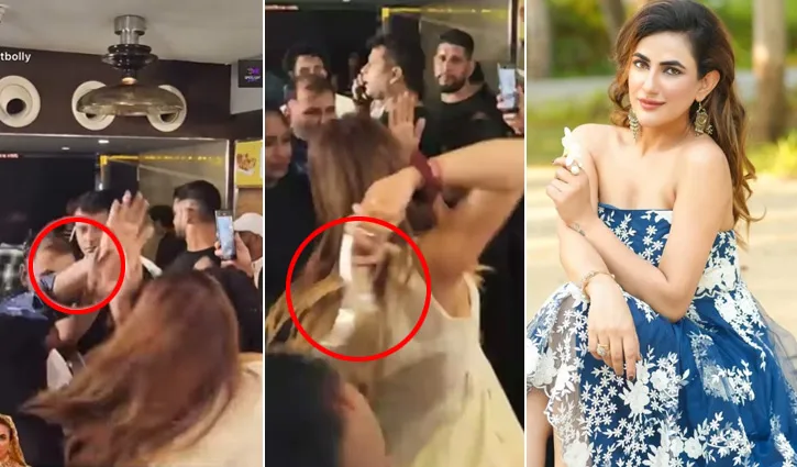 প্রেক্ষাগৃহে অনেক মানুষের জটলা। পাশেই দাঁড়িয়ে তর্ক করছেন মডেল-অভিনেত্রী রুচি গুজ্জার। এক পর্যায়ে পায়ের জুতা খুলে পরিচালক-প্রযোজক করন সিংকে পেটাতে