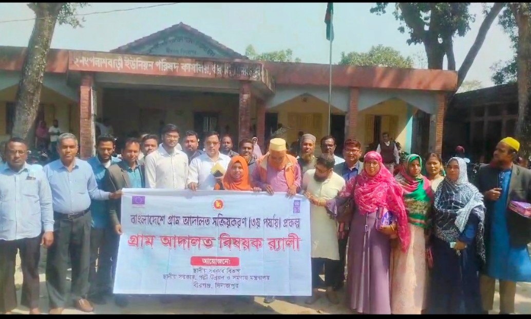 দিনাজপুরের বীরগঞ্জ উপজেলার পলাশবাড়ী ইউনিয়নে গ্রাম আদালত বিষয়ক কমিউনিটি মতবিনিময় সভা এবং ভিডিও প্রদর্শনী অনুষ্ঠিত হয়েছে। বুধবার বেলা ১১টায় ইউনিয়ন